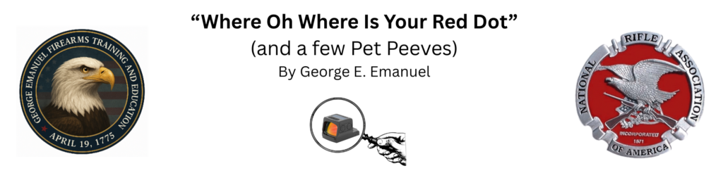 Now any time we discover a problem which requires a cure, we first need to diagnose the situation to narrow down in a process of eliminating the cause or causes, as one frequently leads to a whole chain of others. It is amazing how much your shooting will improve in so many other areas by doing this, if you will be attentive. Improvement will not be due to the Red Dot being easier to use (which it is) but more than anything else because you were infected with so many bad habits. You were standing between yourself and a good target result. (Picture that and let the thought sink in for a moment.) (Blissfulness break concluded.)